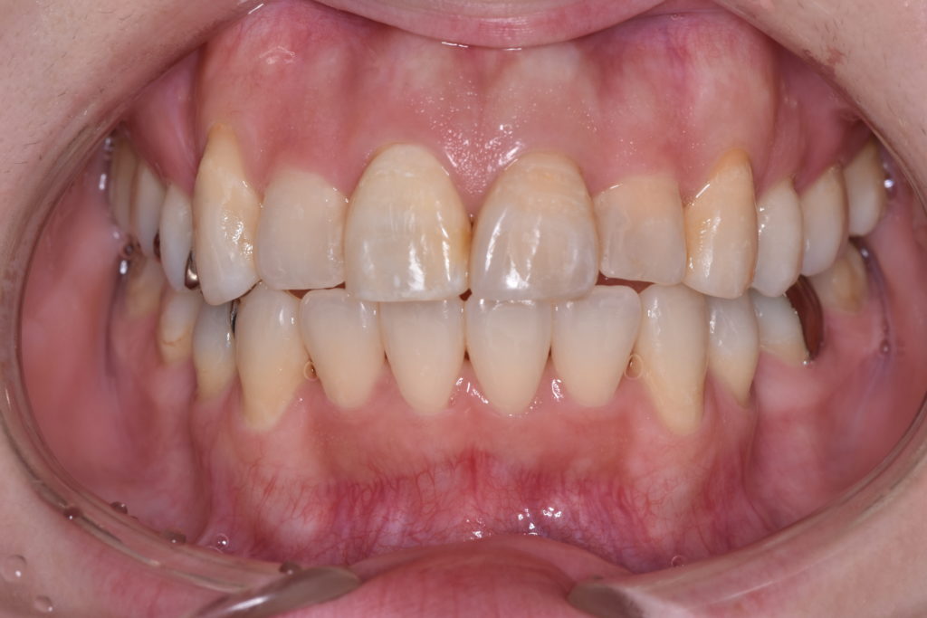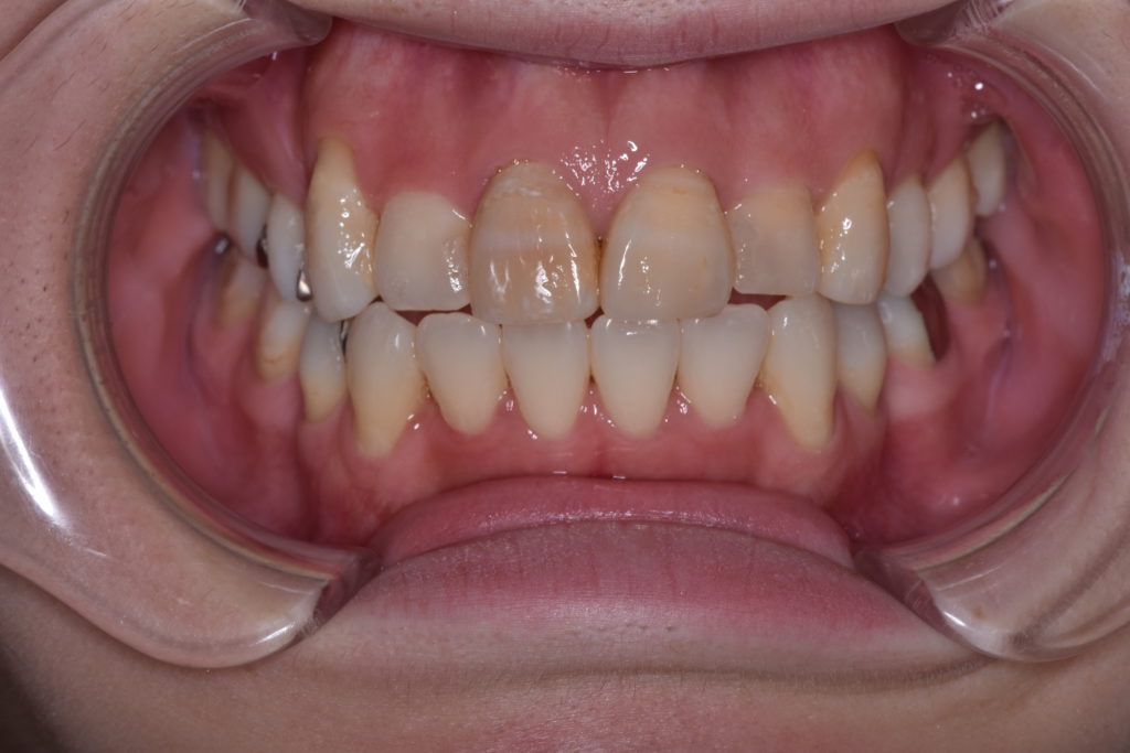 皆様から見て左側の1番目の歯が変色してきているのがおわかりでしょうか?