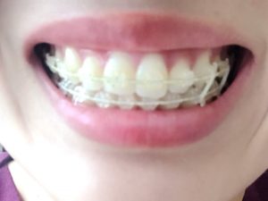 顎間ゴムで口が開きにくくなるため、喋った時に喋りづらかったり、笑った際に見えたりすることもございます。お仕事や学校、そのほかの理由で一日中つけたままでいられないこともあると思いますがら頑張ってつければつけるほど、治療が早く進み、仕上がりも綺麗になります。