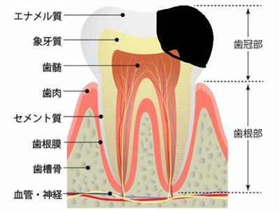 象牙質はエナメル質に比べて柔らかく、細菌が広がりやすい性質があります。